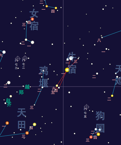 Découvrez la loge lunaire de l’astronomie chinoise, un fascinant segment du ciel qui s'étend sur environ 8 degrés. Son étoile emblématique, β Capricorni, également connue sous le nom de Dabih, marque la limite occidentale de cette loge mystérieuse. Enrichie par la présence de cinq autres étoiles, cet astérisme captivant est étroitement lié à la tortue noire du nord dans l'univers de l'astrologie chinoise. Plongez dans les secrets de cette loge lunaire et laissez-vous envoûter par son histoire céleste.